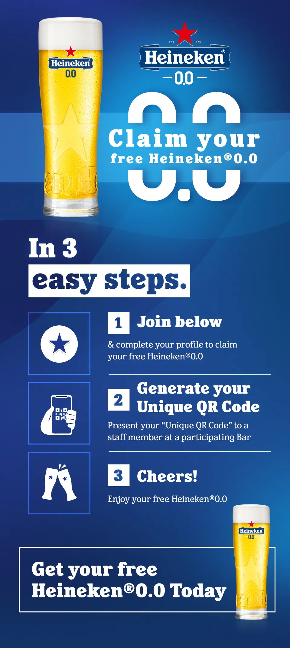 I agree that my phone number and name will only be used by Heineken for the provision of the QR code. This personal data will not be used by Heineken or third parties for any other purpose without my consent.